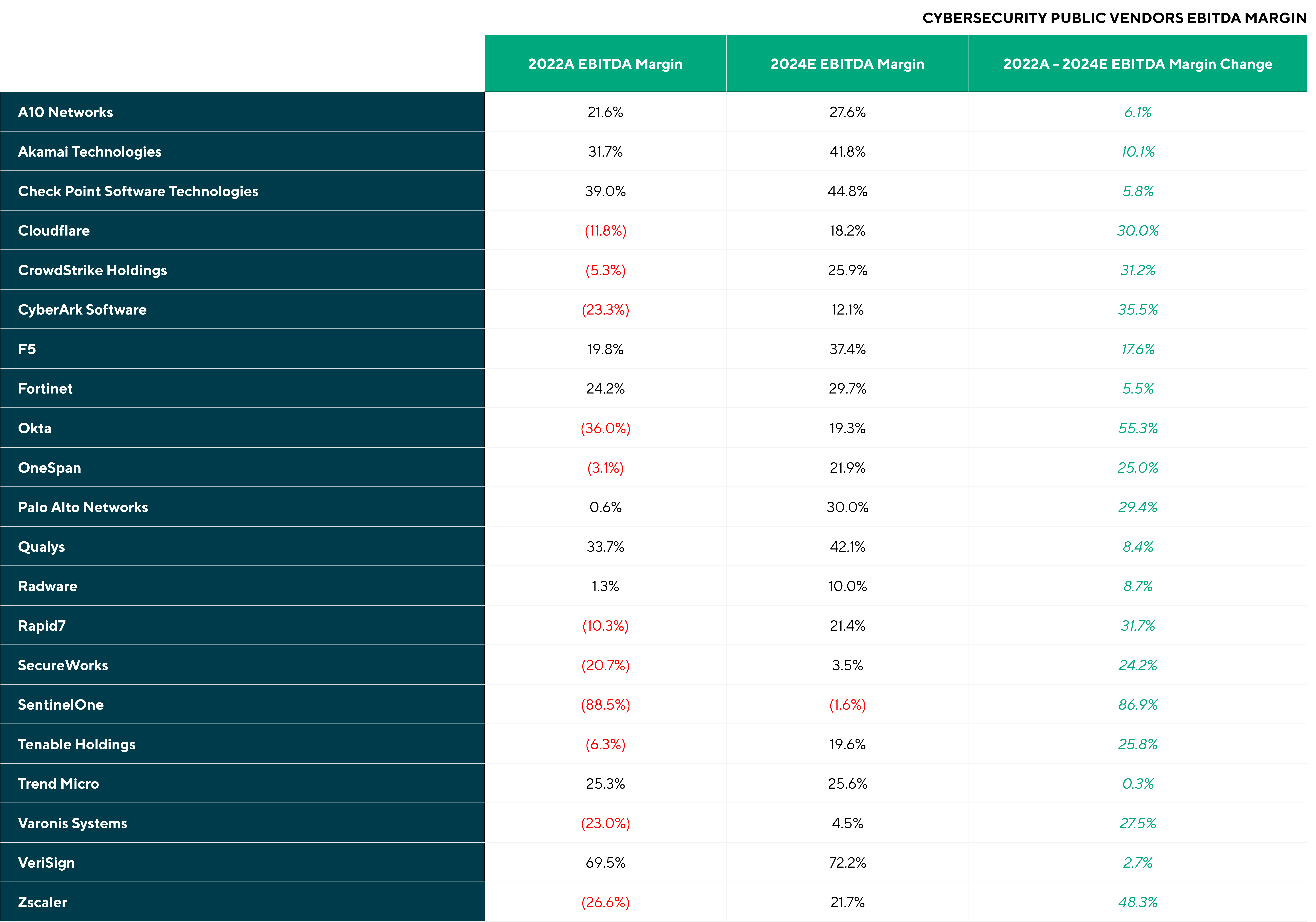 Savings, rather than spending, emerged as a key theme this year. Cyber professionals are looking to do more with less, as balanced growth and profitability continue to be critical drivers for valuations.