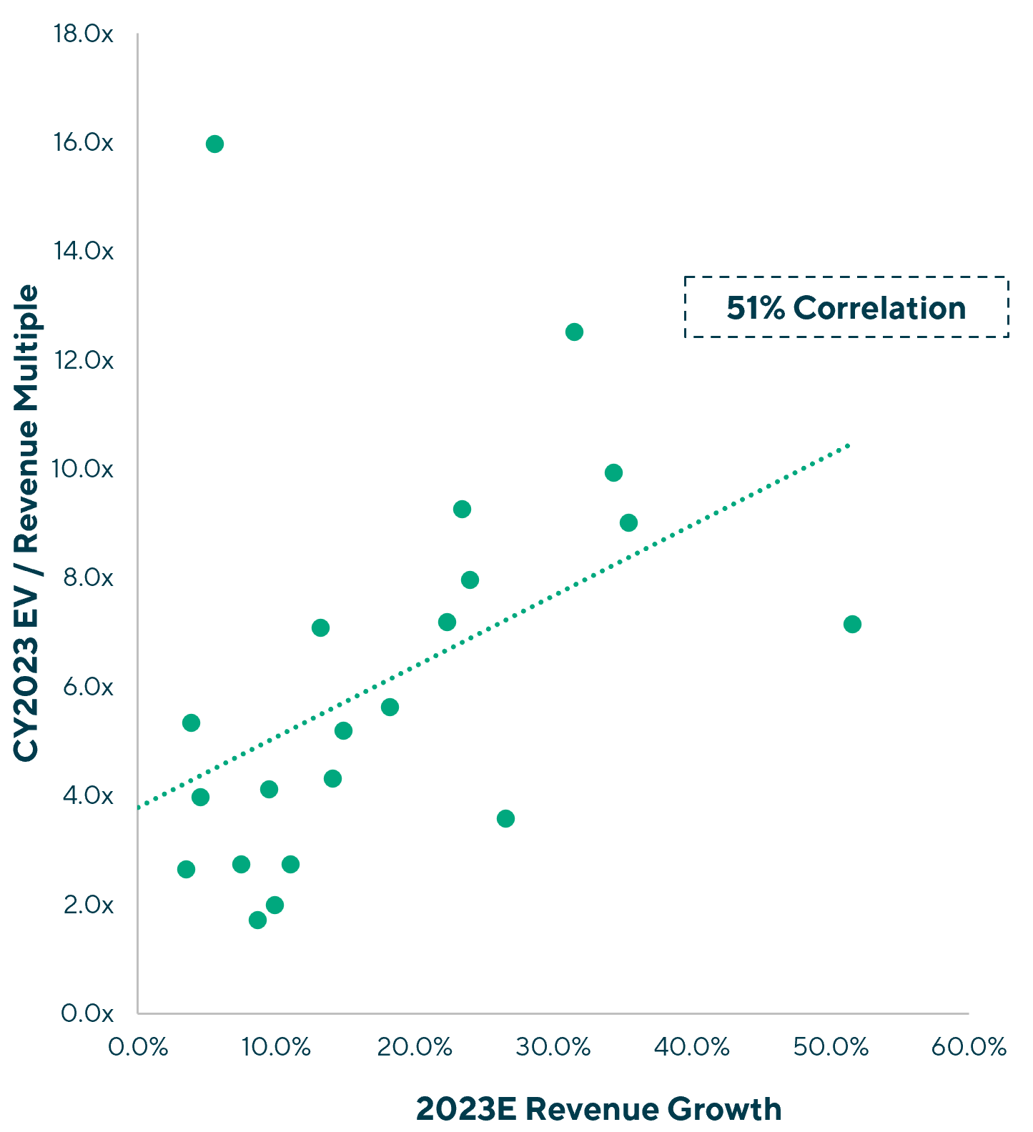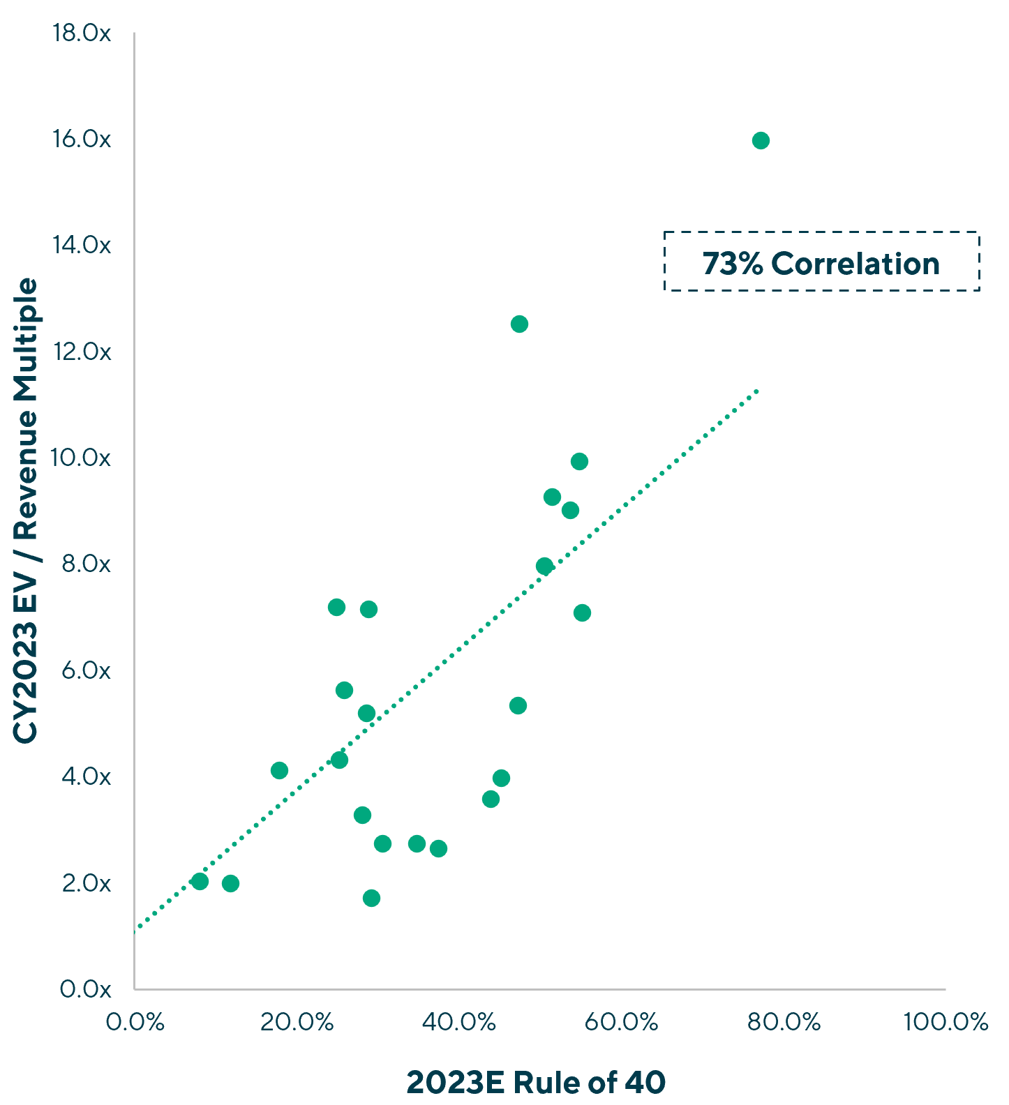 | Rule of 40(1) versus Enterprise Value / Revenue Multiples | Revenue Growth versus Enterprise Value / Revenue Multiples |