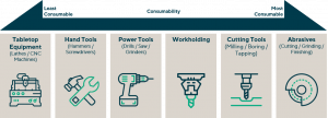 The tool market generally includes manufacturers of components and equipment, including woodworking, metalworking and hand tools. Within the market, several sub-sectors exist which can be classified according to the consumable nature of its products. Abrasives for cutting, grinding and  finishing, or cutting tools for boring and milling, represent the most consumable in nature—which, in turn, makes these companies highly sought after  by potential acquirers in search of less cyclical investment targets.