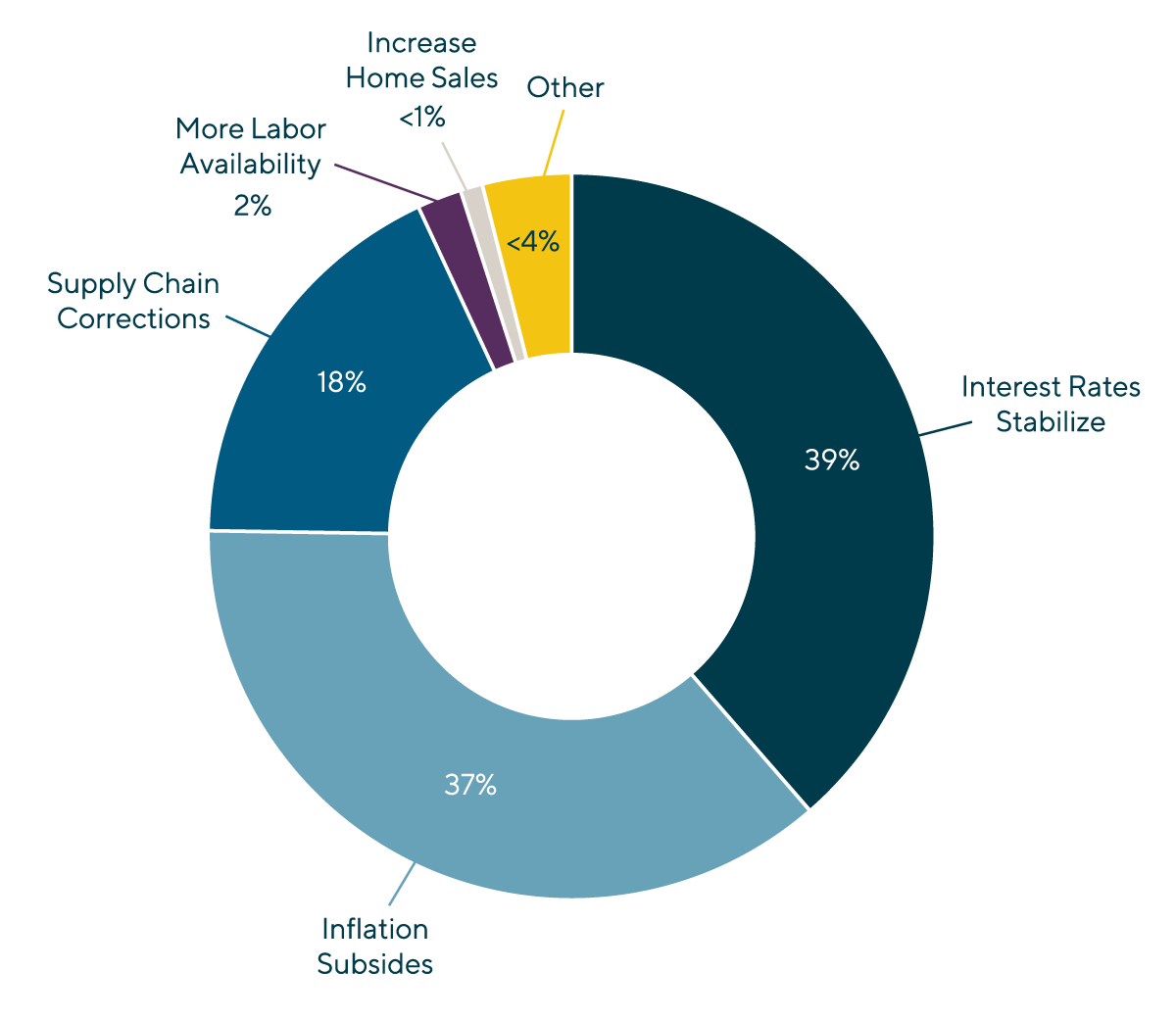 Supply chain issues have been a key concern over the past several years. 18% of surveyed investors agreed that ongoing supply chain corrections post-pandemic will restore confidence around steady state business performance indicators. As companies sell through excess, high-cost inventory purchased at the peak of the supply chain crisis, earnings will continue to show softness. However, we anticipate a meaningful uptick in the profitability of these businesses in Q4 and Q1, which should give sellers and buyers more confidence in transacting.