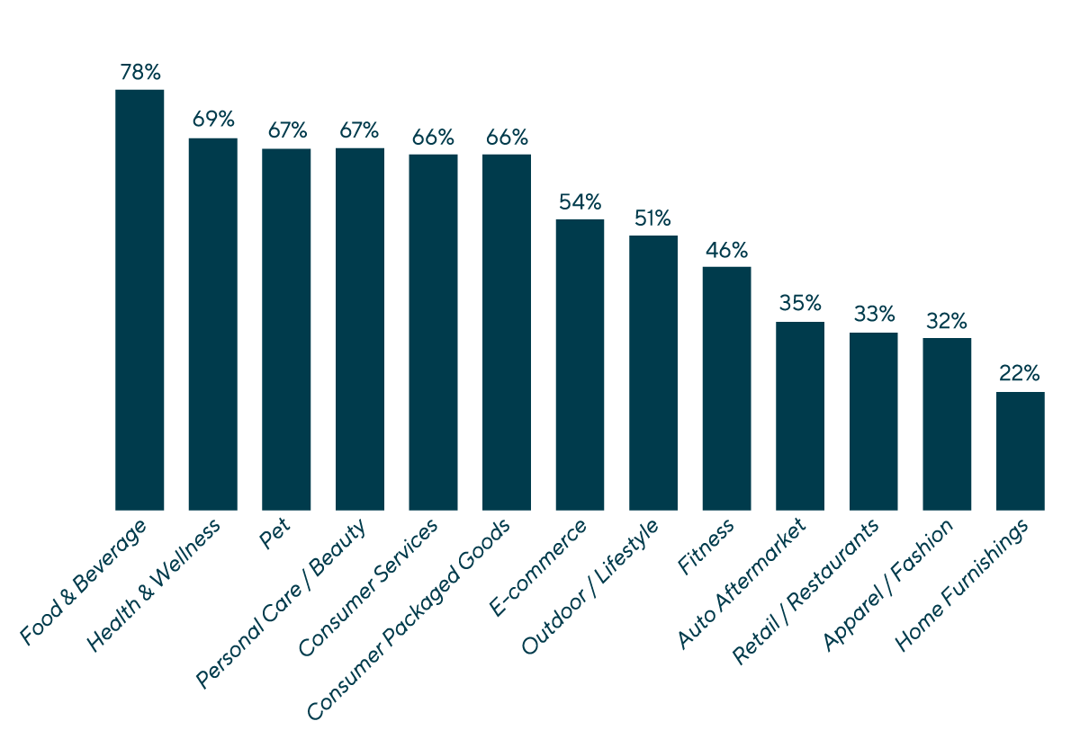 Dealmakers see opportunity in food and beverage, health and wellness, pet and personal care / beauty, all categories that exhibit qualities of recession resilience and steady consumer spending.