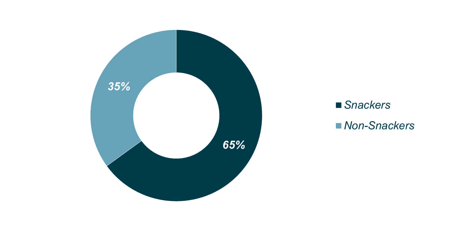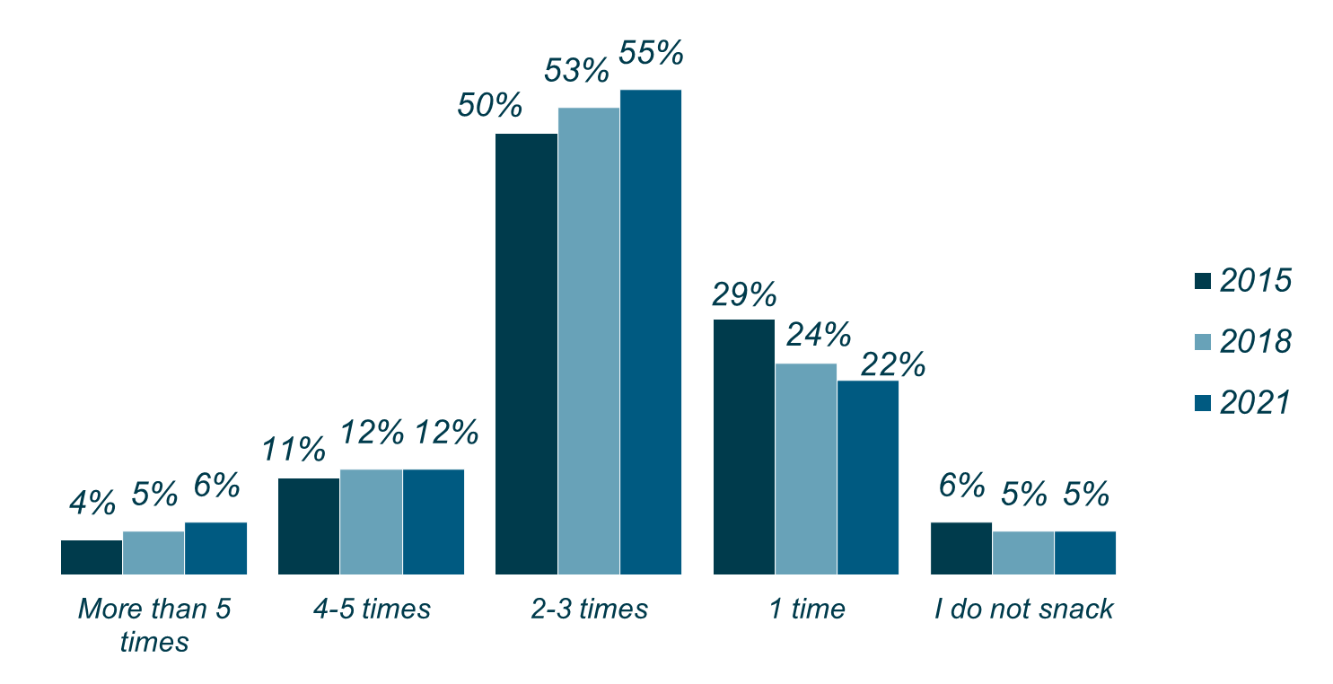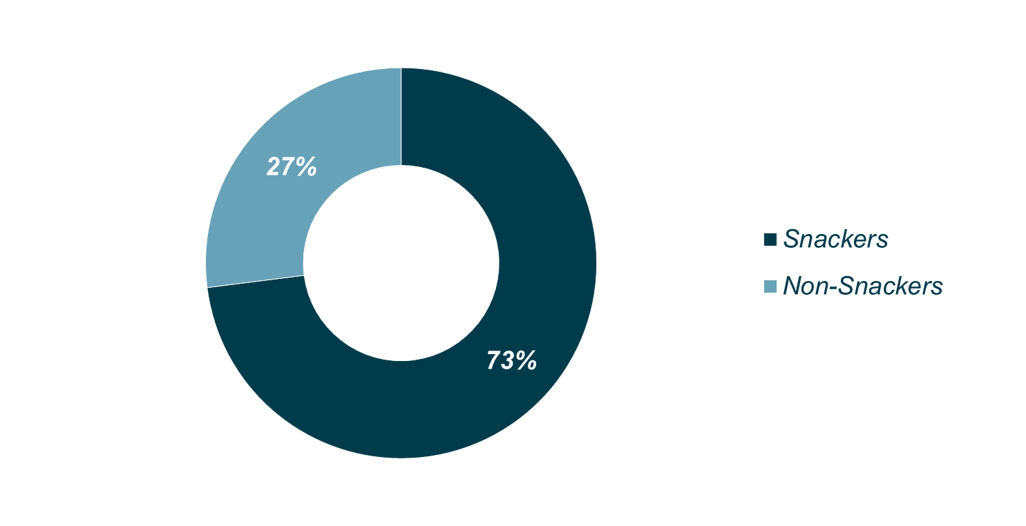 • Favorable underlying trends toward snacking overall as well as snacking multiple times throughout the day