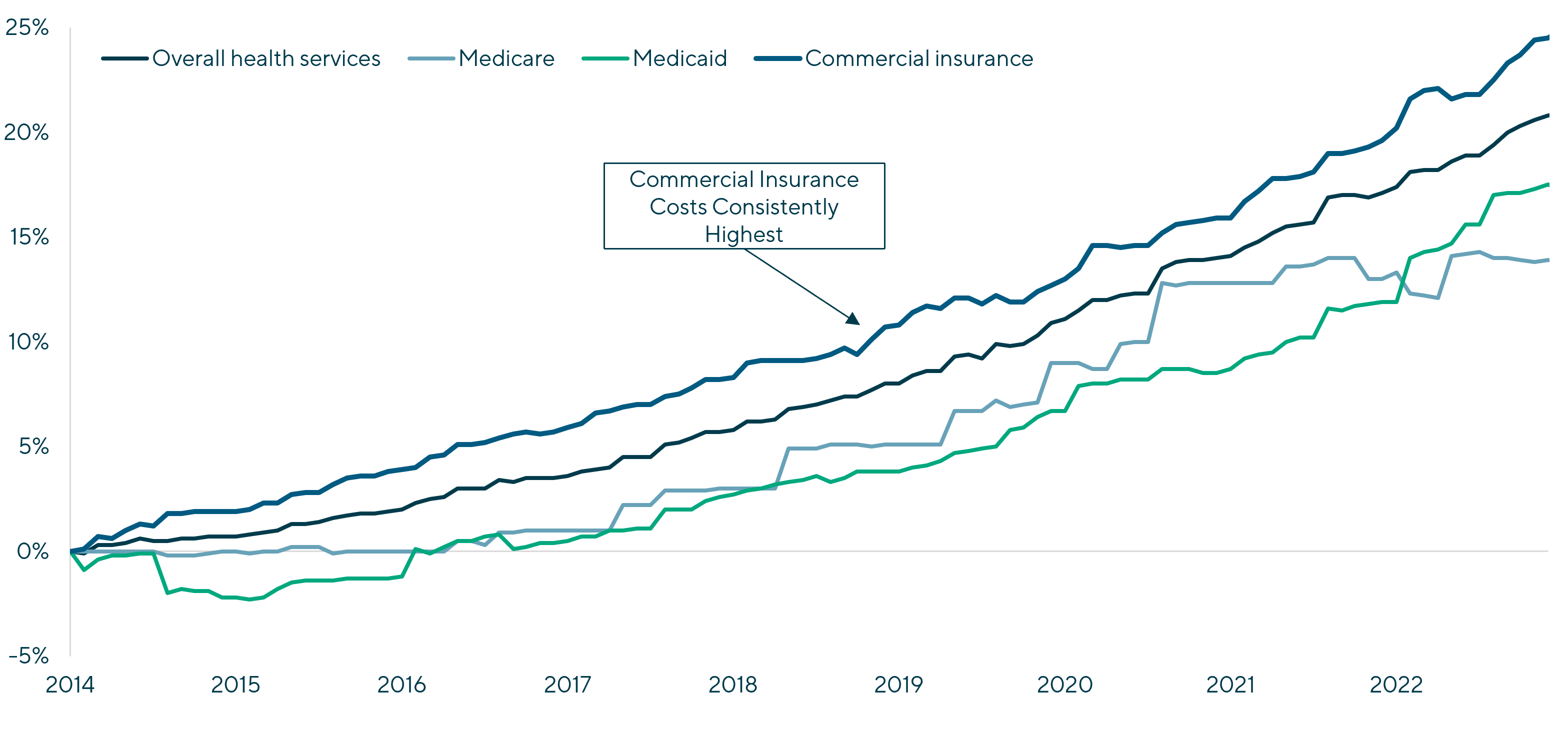 - https://www.healthsystemtracker.org/brief/how-does-medical-inflation-compare-to-inflation-in-the-rest-of-the-economy/#Cumulative%20percent%20change%20in%20Producer%20Price%20Index%20(PPI)%20for%20health%20care%20services,%20June%202014%20-%20February%202023.%20not%20seasonally%20adjusted