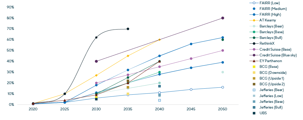 Alternative proteins; forecasts range from 15% to 80% meat substitution