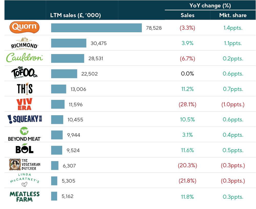 Sales in the chilled meat-free category declined 9% in the last year(1)