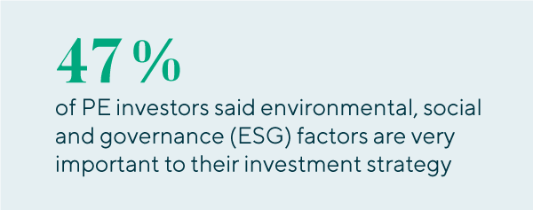 Looking Ahead:We expect continued pressure from limited partners (LPs) and stakeholders to push companies to stick to stated ESG goals. Even with a potential economic downturn on the horizon, momentum behind ESG investing will endure as LPs indicate preferences for ESG-conscious assets in their capital allocations and PE sponsors align their portfolios in turn. |