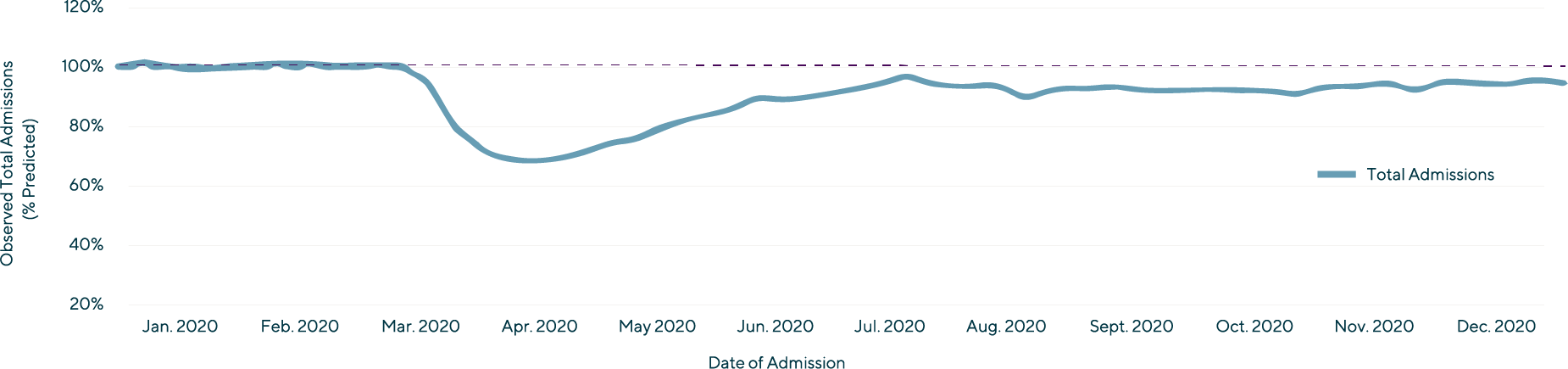 Trend in Observed Total Hospital Admissions as a Percent of Predicted Admissions (December 29, 2019 – December 5, 2020)(2) |