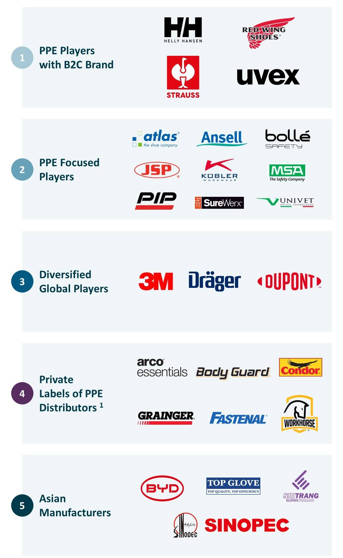 Historically strong performers in the budget segment (including B2C PPE distributers, multi-sector players with a PPE focus and diversified global players active in the PPE market) are all expected to experience a moderate loss of market share to Asian manufacturers and private label brands due to disruptions caused by shifting supply chains, global innovations and evolving standards in the PPE market.