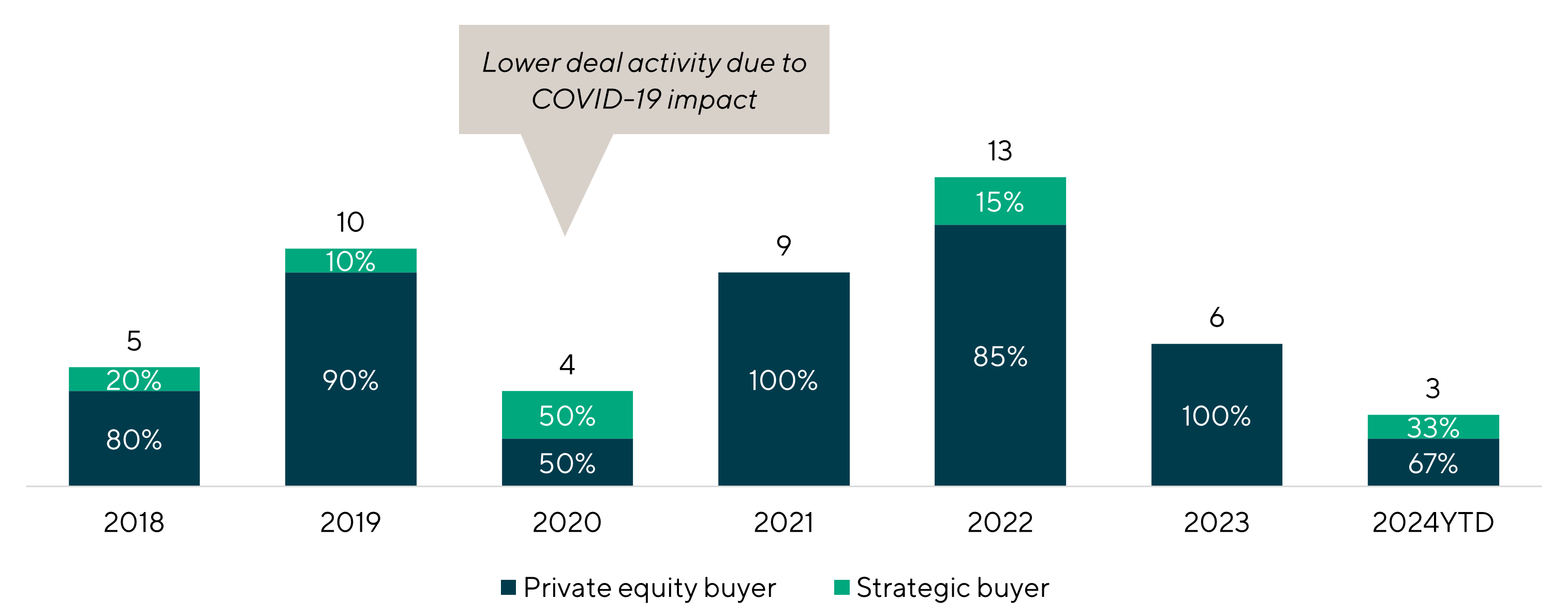 Driven by its robust growth potential, high margins, and resilient business dynamics, private markets have demonstrated strong interest in the semiconductor equipment sector, with over 30 key private equity-led transactions since 2020.
