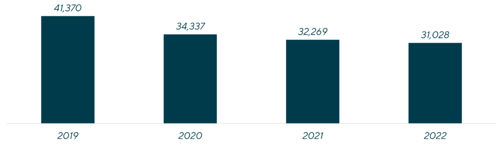 Few industries were as negatively impacted by COVID-19 as the in-person fitness industry. Deemed “non-essential” businesses, gyms were forced to close their doors for an extended period of time and endure a cautious, phased approach to re-opening that varied significantly based on geography and changing public health guidelines. As a result of the challenging operating environment, many gyms closed permanently. In fact, the number of U.S. gym locations decreased by ~25% from 2019 to 2022, with the long tail of independent gyms disproportionately affected.