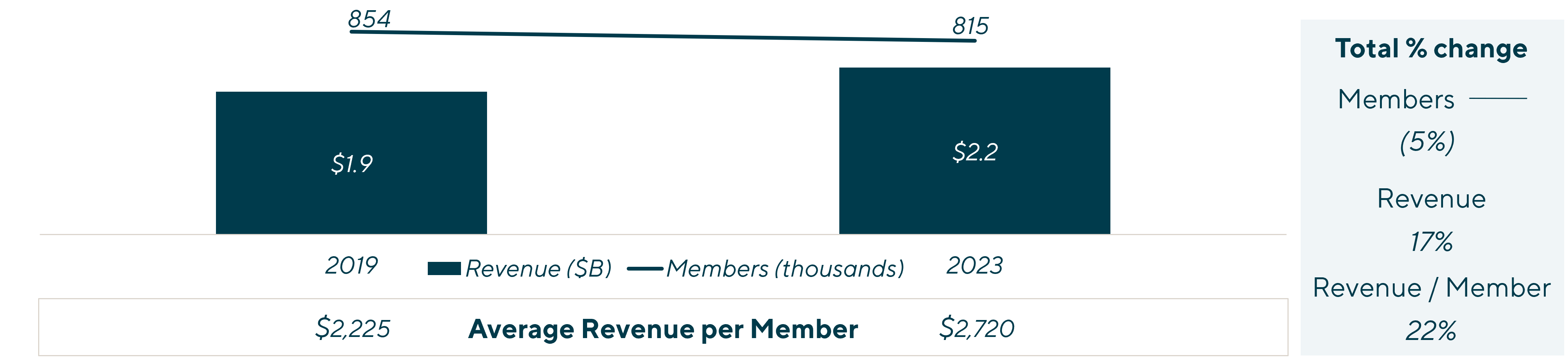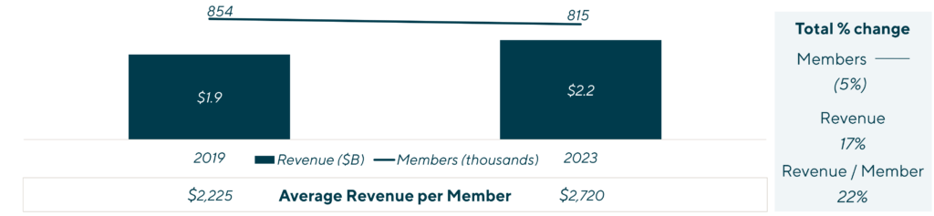 | Life Time Fitness Revenue and Membership (EOY 2019 vs. EOY 2023) |