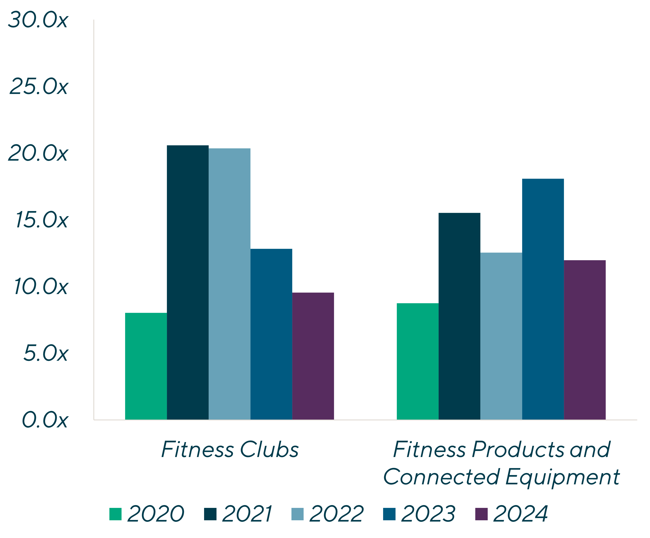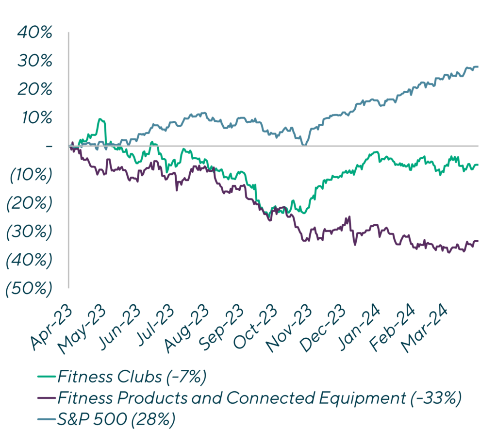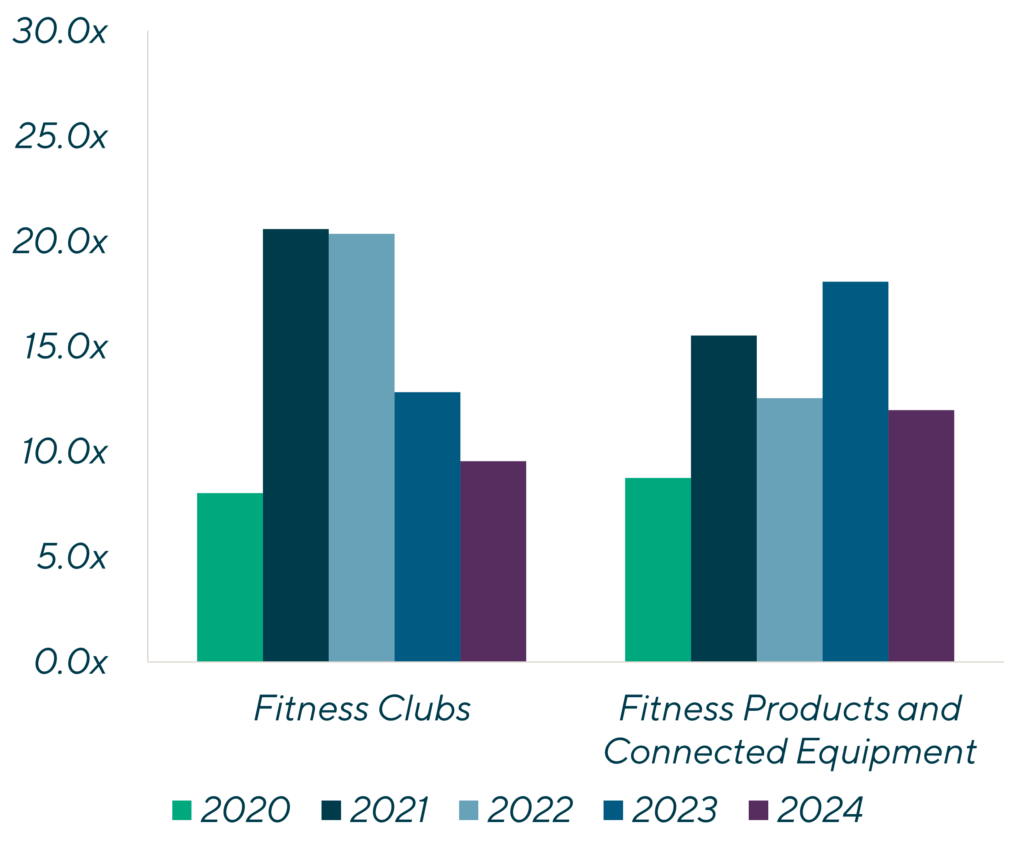 In 2020 and early 2021, consumers built up their garage or spare room gyms en masse. As work-from-home regulations ended and supply chain dynamics resolved in the industry, there was a clear signal to the fitness product market that demand was leveling off at the same time supply was finally unrestrained. These trends were made public through Peloton’s stock price and have rippled throughout the fitness products ecosystem. As we look ahead to 2024 and 2025, there will likely be a focus on channel diversification (e.g., consumer focused brands leaning into commercial opportunities) along with continued consolidation in the sector as companies with strong balance sheets continue to add brands within their portfolio umbrellas.