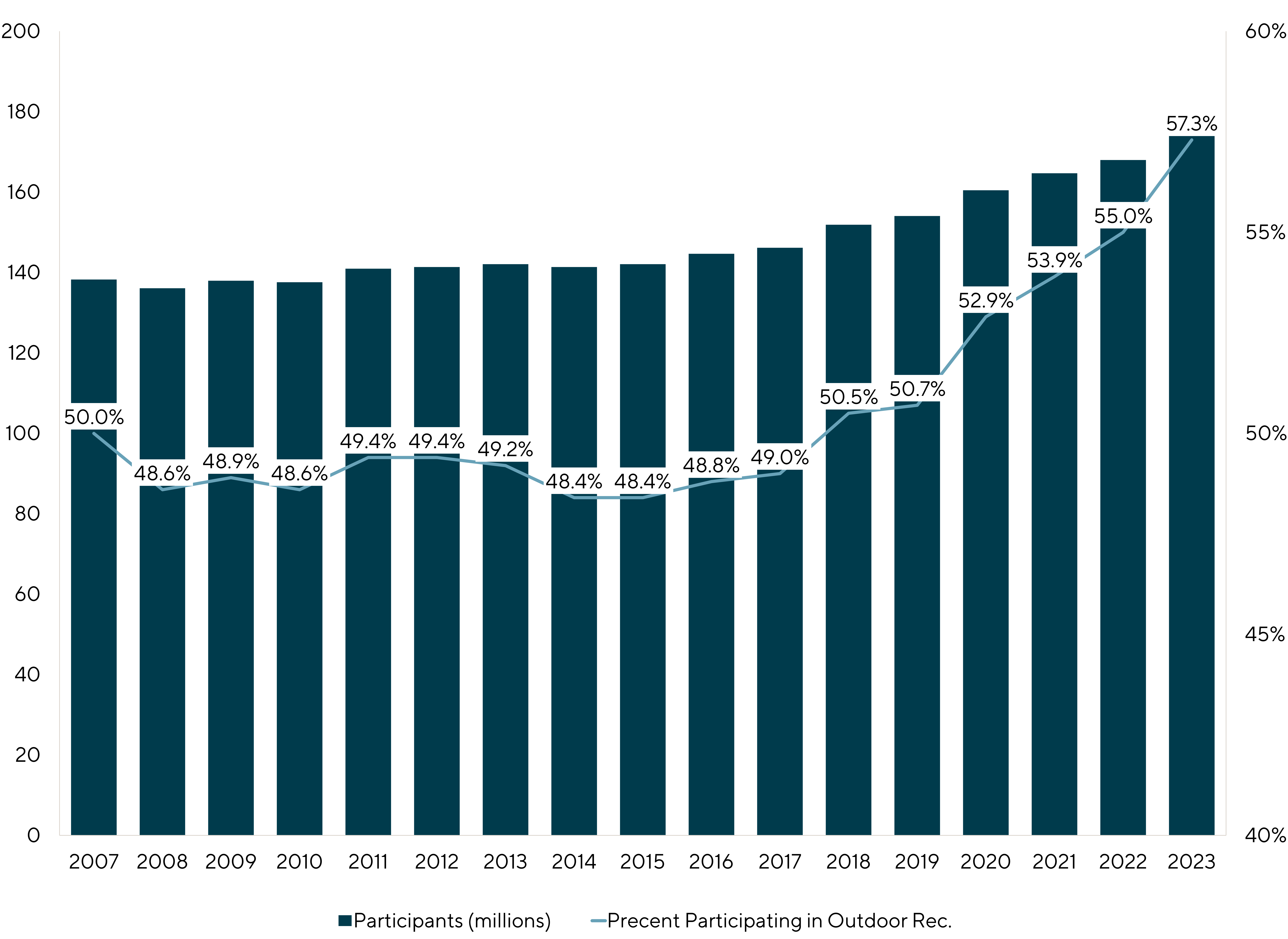 While more consumers are participating in outdoor activities, overall purchase volumes have seen a decline. This paradox suggests a shift towards experiential consumption, where consumers prioritize access and experiences over ownership. Companies need to adapt their strategies to capitalize on this behavioral shift.