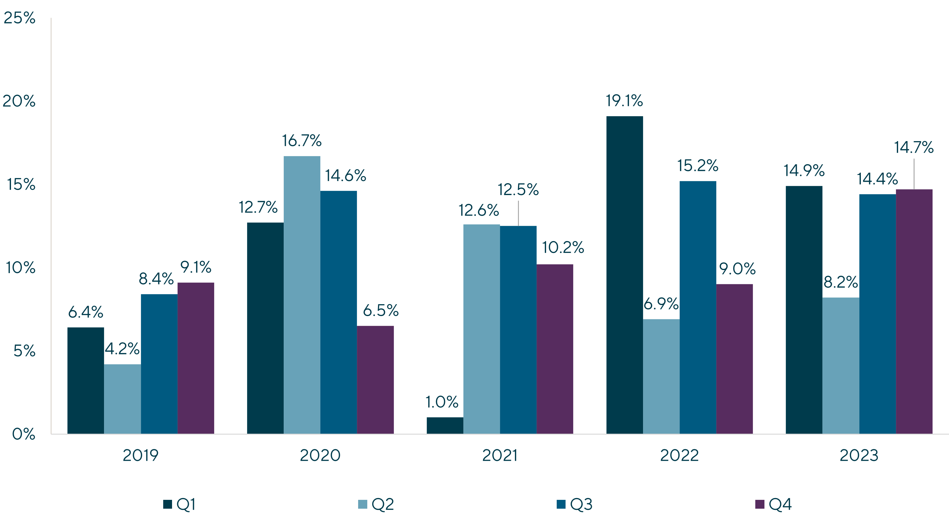 Financial acquirers and lenders exhibited increased discernment and rigor in their investment and financing strategies, particularly regarding discretionary consumable product companies. This led to a significant impact on active outdoor M&A processes, as financial investors shied away from companies battling margin compression, elevated inventories and changing consumer preferences.