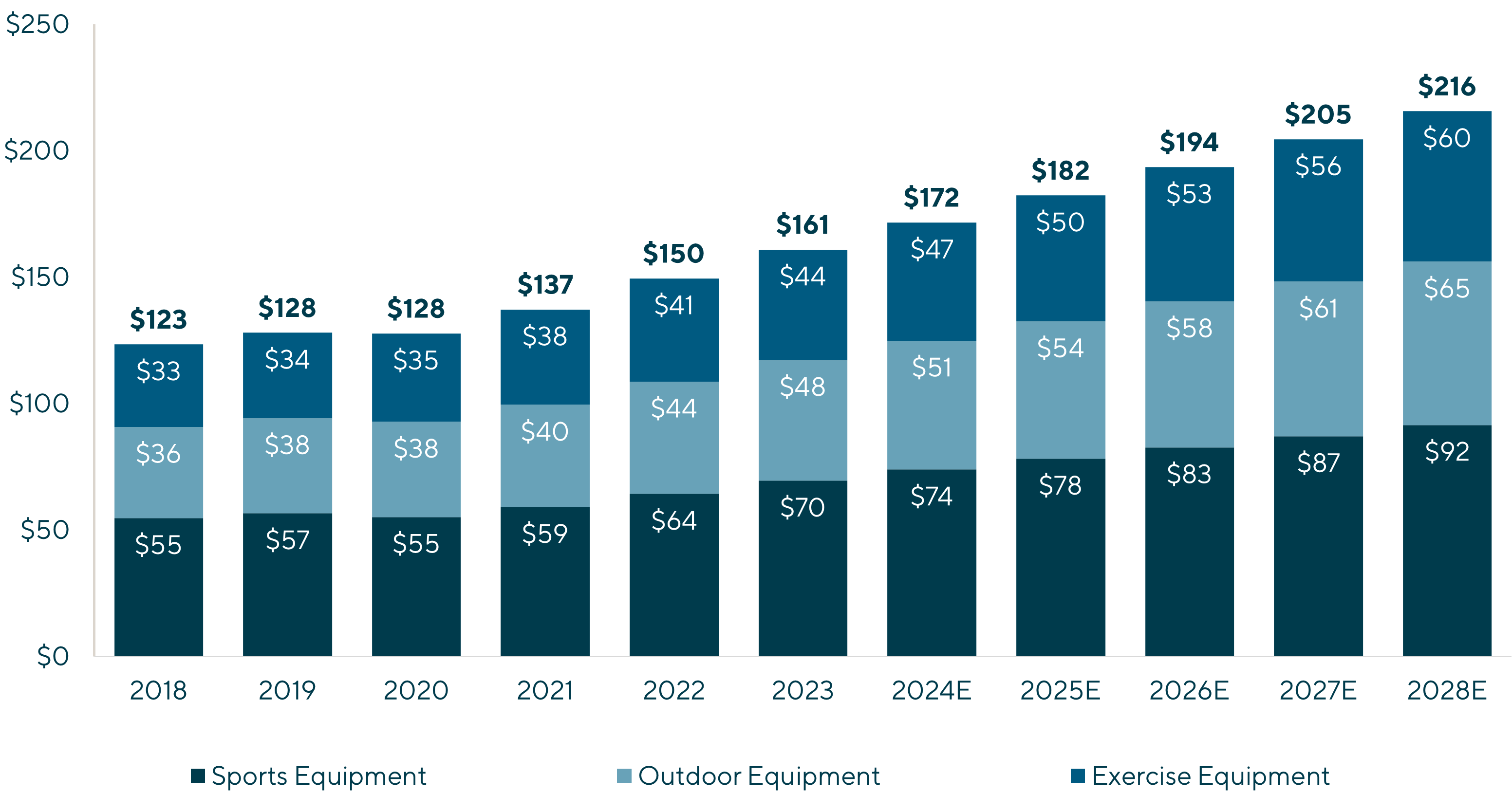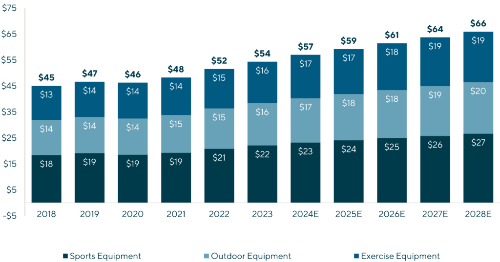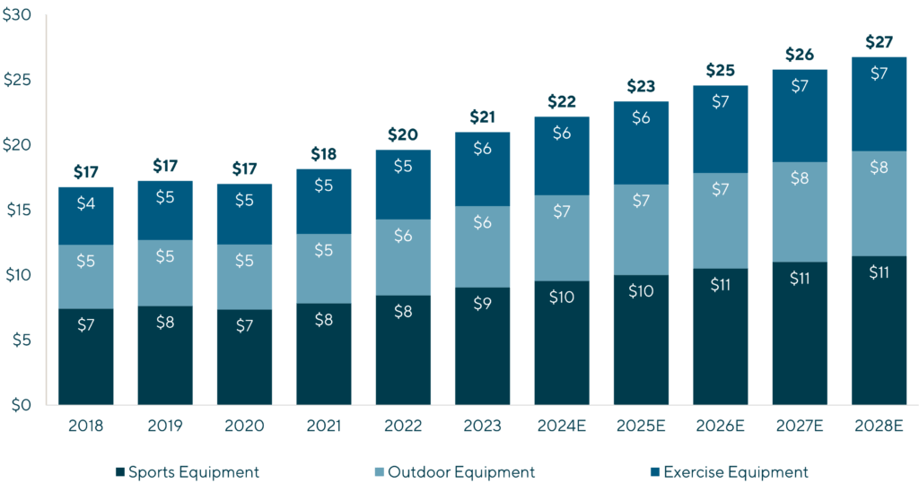 Representing a bright spot within the broader discretionary consumer product sector, many sports equipment product companies have continued to deliver impressive financial results, as the recurring nature of this subsector leads to more stable consumer spending trends year over year. These companies are taking advantage of the continued consumer spending on youth sports and the need for consistent innovation within the category. What was once thought of as a category soon to be impacted by generational shifts to video games rather than team sports, is now experiencing increasing average spend per athlete, pricing power and overall category revenue.