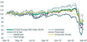 Lenders are honouring existing commitments with negligible retrades; however, debt and equity investors are cautious when reviewing new opportunities. Lenders remain focused on their existing portfolios and are in regular communication with management teams and sponsors to assess the impact of Covid-19. Government measures are helpful but unlikely to be sufficient for most companies. Many portfolio companies are drawing on revolver and delayed draw facilities as they seek liquidity to support operations and bridge the interim volatility. Impact of the COVID-19 Crisis on Valuation Approach Given extreme market volatility, Lincoln has opted to more heavily weight the income approach as opposed to a market approach (which is an unreliable indication of intrinsic value at present) when valuing credit positions of debt funds. European Equity Markets: Sector Return Indices (EUR)