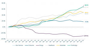 As of the third quarter, the Lincoln MMI grew by only 1.4%—the second lowest in the last two years and the lowest level since Q4 2018. Ron Kahn, Co-head of Lincoln’s Valuations and Opinions practice explained, “The stock market continues to reach record highs, and while positive enterprise value growth has sustained itself in the middle market, lower growth in cyclical and lower cash flow generating industries have led to a drag on overall performance of the Lincoln MMI. When you peel back the onion, the growth we’re seeing is isolated to specific industries: recession resilient sectors like software and healthcare with strong cash flows.”