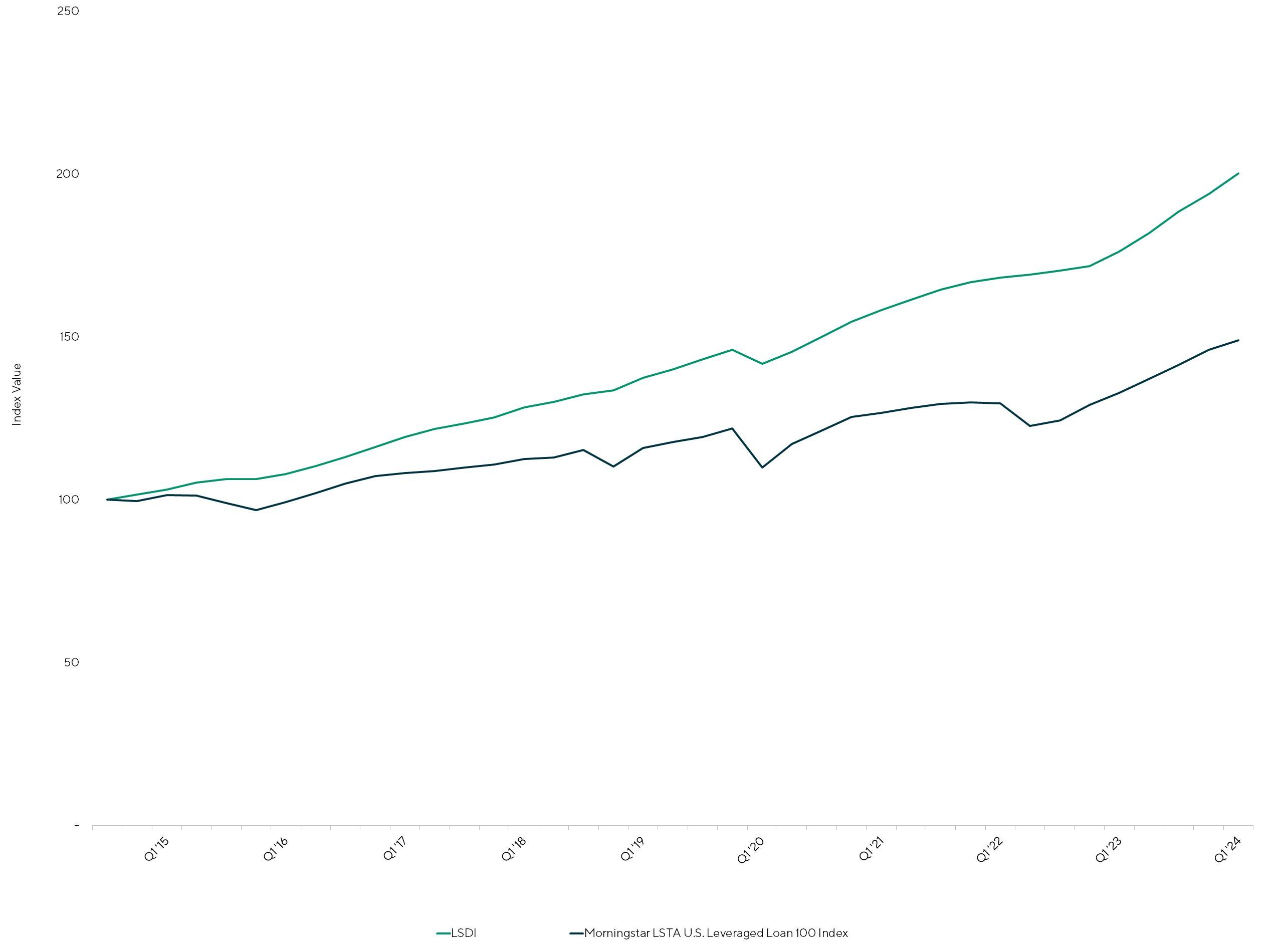 In contrast to the Morningstar LSTA U.S. Leveraged Loan 100 Index which is comprised of companies borrowing in the BSL market, the constituents in the LSDI are virtually all companies borrowing in the direct lending market.
