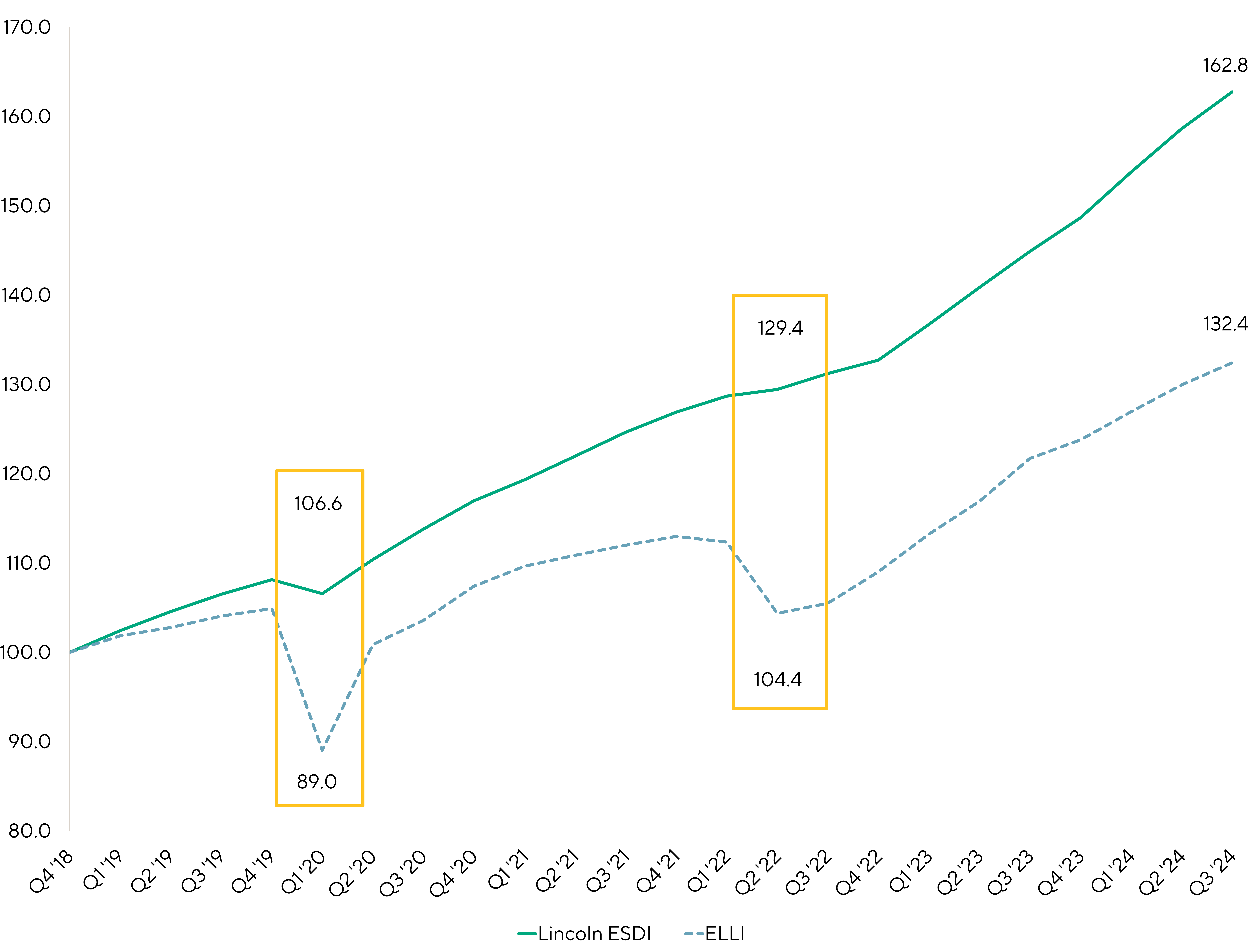 In contrast to the Morningstar European Leveraged Loan Index (“ELLI”) which is comprised of companies borrowing in the BSL market, the constituents in Lincoln’s European Senior Debt Index (“ESDI”) are all private credit borrowers.