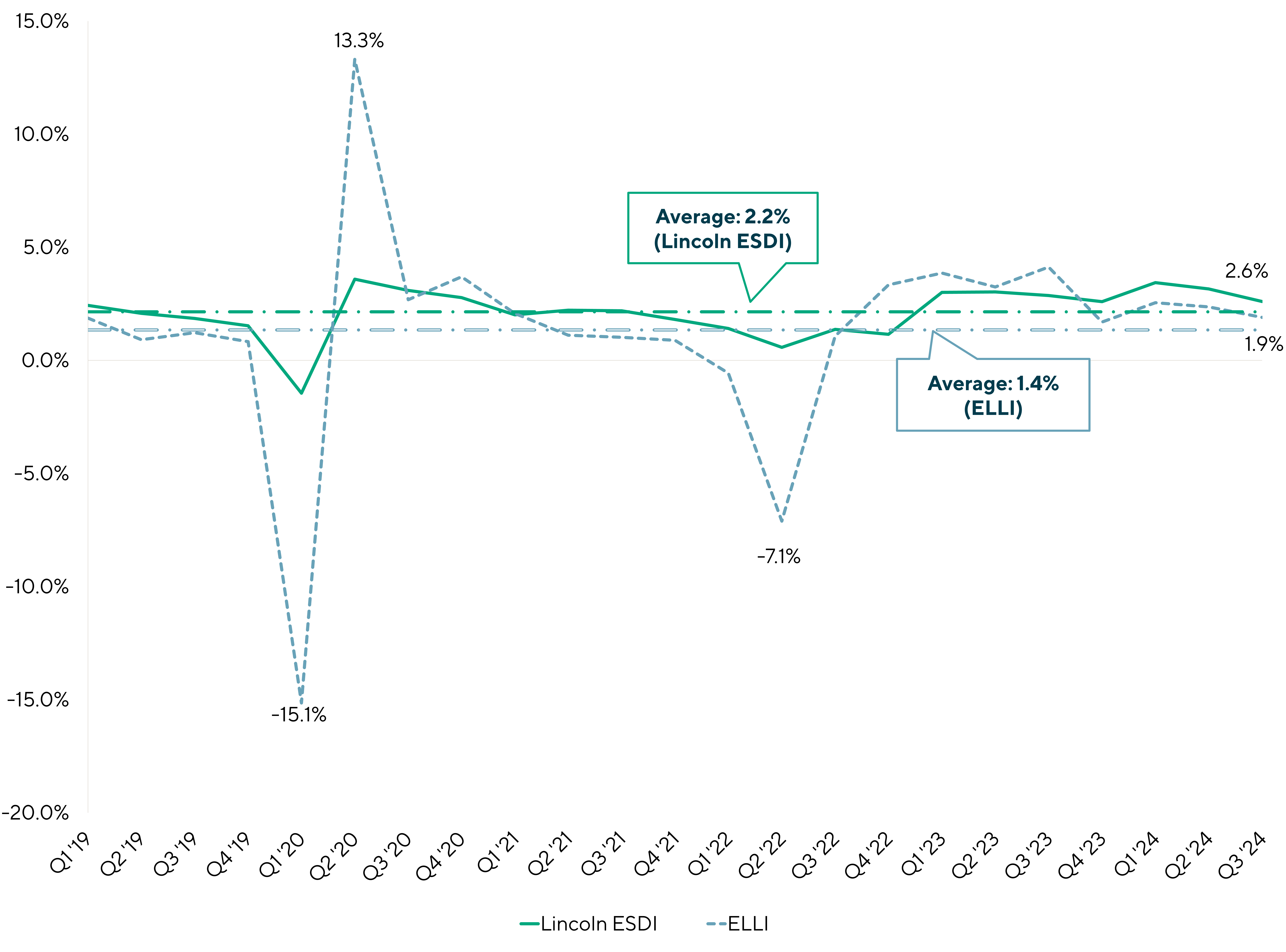 The Lincoln ESDI should not be construed as an offer to sell or buy, or a solicitation to sell or buy, any products which refer to the Lincoln ESDI. The use of the Lincoln ESDI in any manner is not endorsed or recommended by Lincoln International and Lincoln International is not responsible for any use made of the Lincoln ESDI, and use of the Lincoln ESDI is by permission only via a Data Usage Agreement with Lincoln International. The Lincoln ESDI must not be used to: (i) determine the amount payable under a financial instrument or a financial contract or the value of a financial instrument; or (ii) measure the performance of an investment fund with the purpose of tracking the return of the Lincoln ESDI or of defining the asset allocation of a portfolio or of computing the performance fees (within the meaning of the EU and UK Benchmarks Regulations). Lincoln International does not guarantee the accuracy and/or completeness of the Lincoln ESDI and Lincoln International shall not have any liability for any errors or omissions therein. None of Lincoln International, any of its affiliates or subsidiaries, nor any of its directors, officers, employees, representatives, delegates or agents shall have any responsibility to any person (whether as a result of negligence or otherwise) for any determination made or anything done (or omitted to be determined or done) in respect of the Lincoln ESDI and any use to which any person may put the Lincoln ESDI. Lincoln International has no obligation to update the Lincoln ESDI and has no obligation to investors with respect to any product which refers to the Lincoln ESDI. Any investment in such a product will not acquire an interest in the Lincoln ESDI. Lincoln International is not an investment adviser and will not provide any financial advice relating to a product which refers to the Lincoln ESDI. Investors should read any such product offering documentation and consult with their own legal, financial and tax advisors before investing in any such product.
