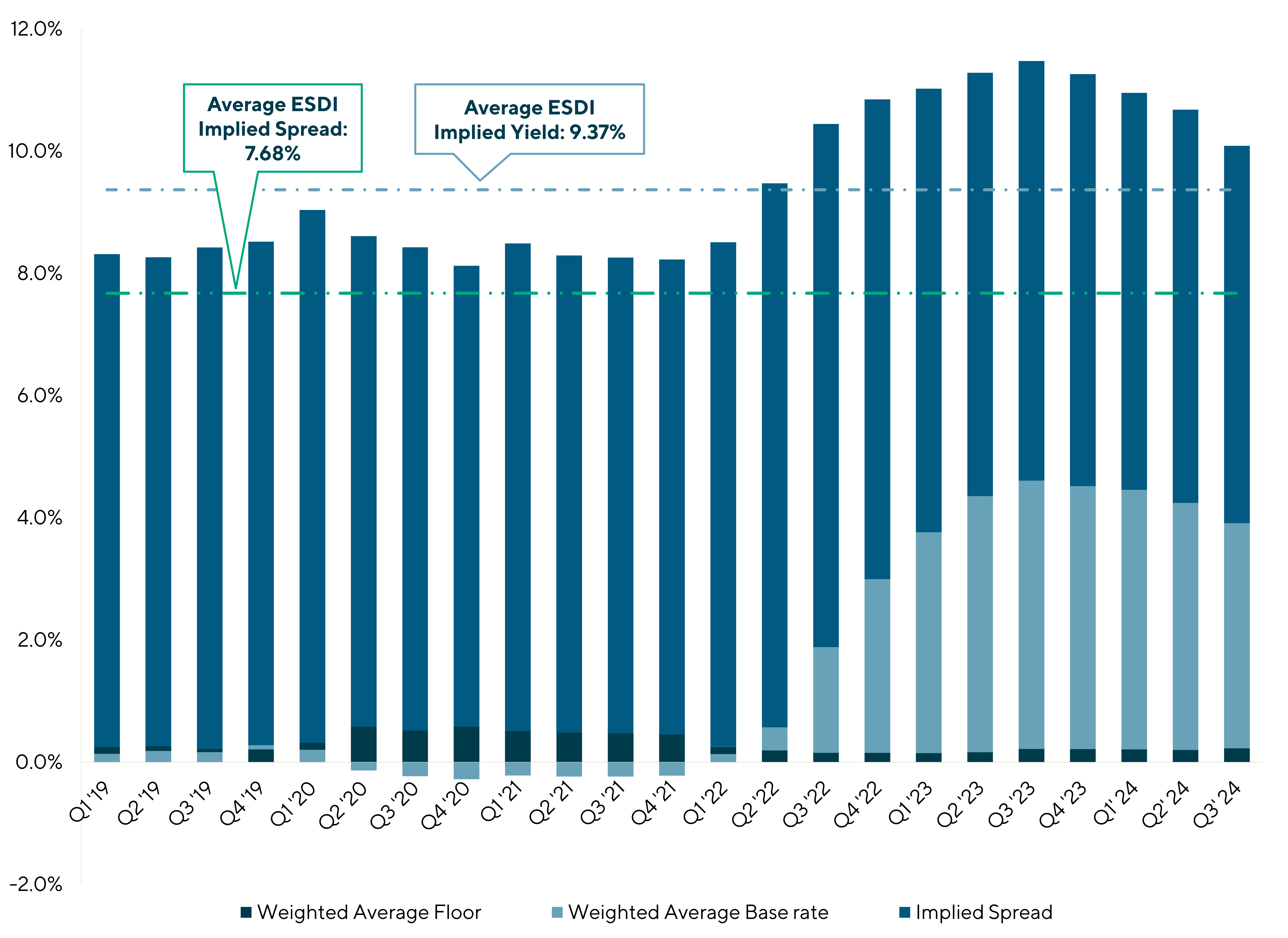 The ESDI provides insight into the direct lending market as it is a fair value index consisting of four components: