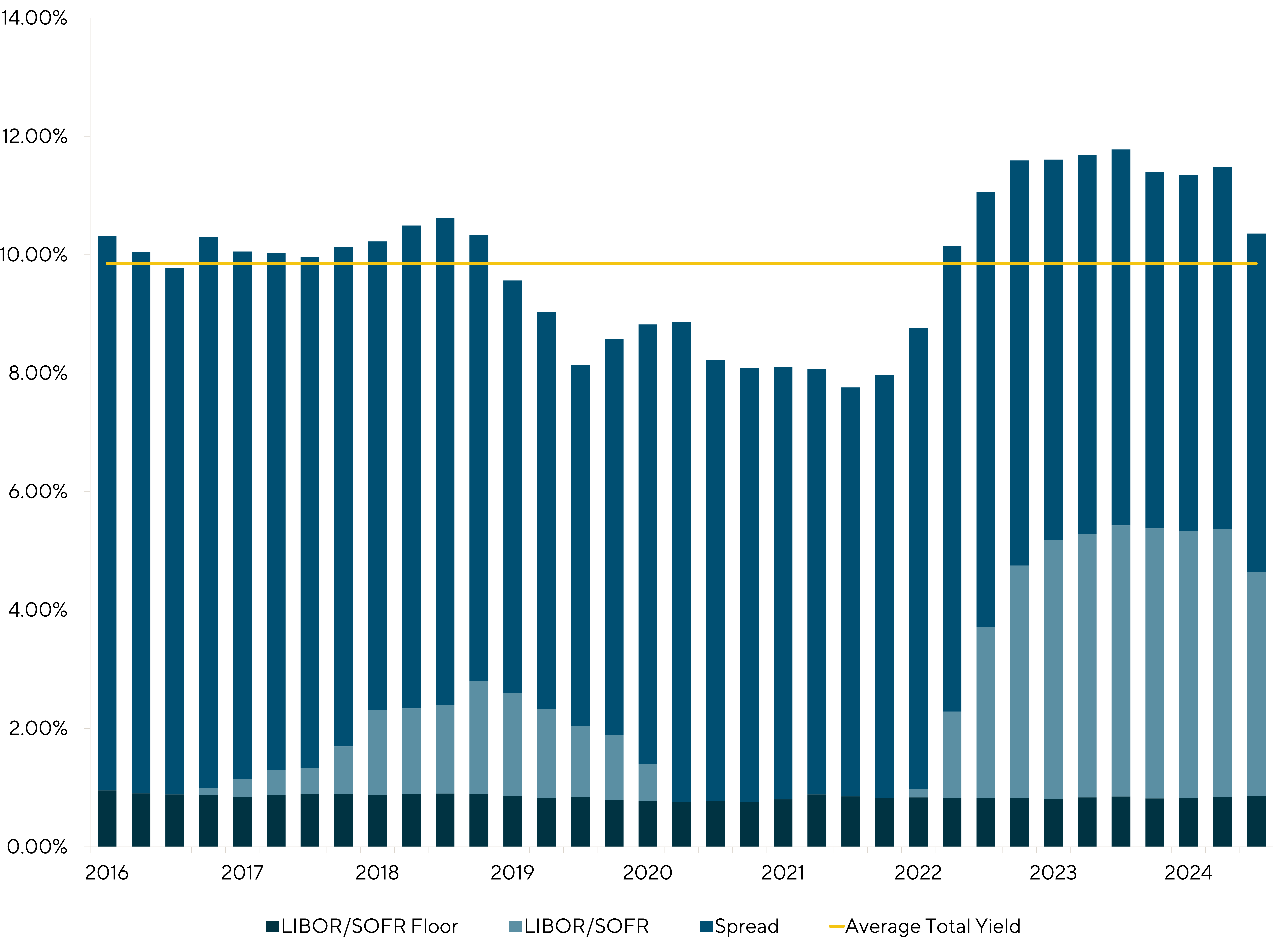 Decomposing Yields in the Direct Lending Market – LIBOR/ SOFR Floors and Spreads